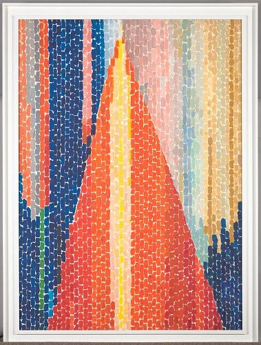 Alma Thomas was a painter who drew much of her inspirations from the natural world and outer space. This piece, titled Blast Off (1970), is heavily inspired by the Apollo 11 launch in 1969. The shapes, line direction, and color can all be clues to what the painting was inspired by, allowing the students to begin to understand how they can take a representative idea and break it down to make an abstract piece.