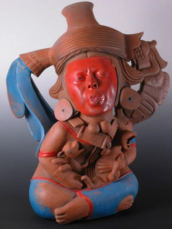 Kukuli Velarde is a Peruvian artist who draws heavy influence from pre-Columbian works. Her series Plunder Me Baby features near replicas of pre-Columbian pottery with her face on it. Students can see how an artist moves past copying and pasting work, and a fun way to put their own spin or mark on the work to make it their own. Kukuli Velarde also draws heavily from her experiences, culture, and ultimately identity in her own works.