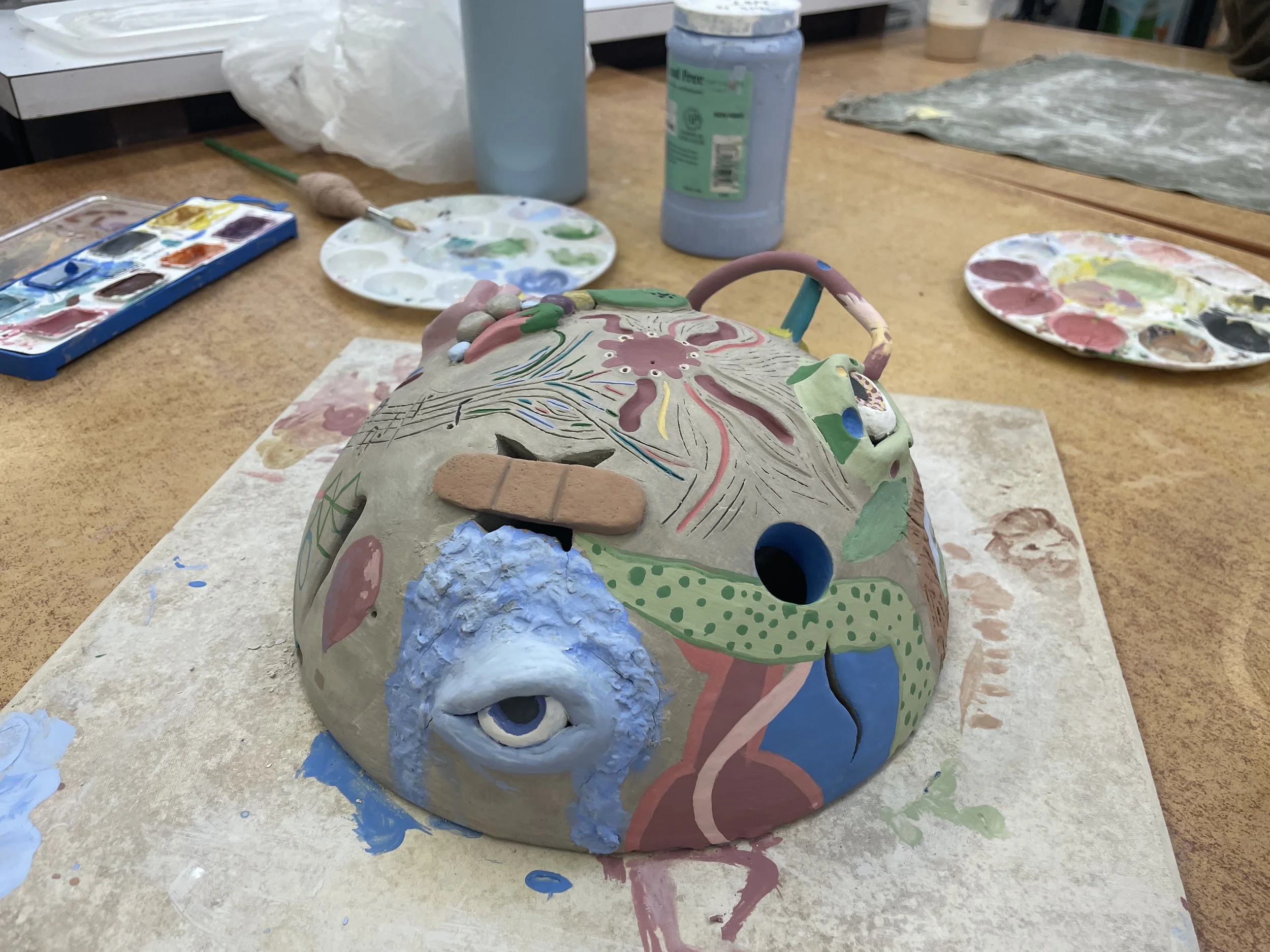 As the highest level ceramics class, students should be thinking and working like ceramic artists. They should be pushing themselves to try new techniques, refine their craftsmanship, and push their ideas out of what is comfortable for them. These students should be creating new and exciting pieces, not copy and pasting ideas from Pinterest or online. In an advanced course, they should be expected to create like artists and to be pushed outside of their comfort zones in art making. The students will also be expected to talk and think about their identity. Students will create a lit vessel that reflects an aspect of their identity, pushing them to reflect inwards rather than copying an idea they found online.